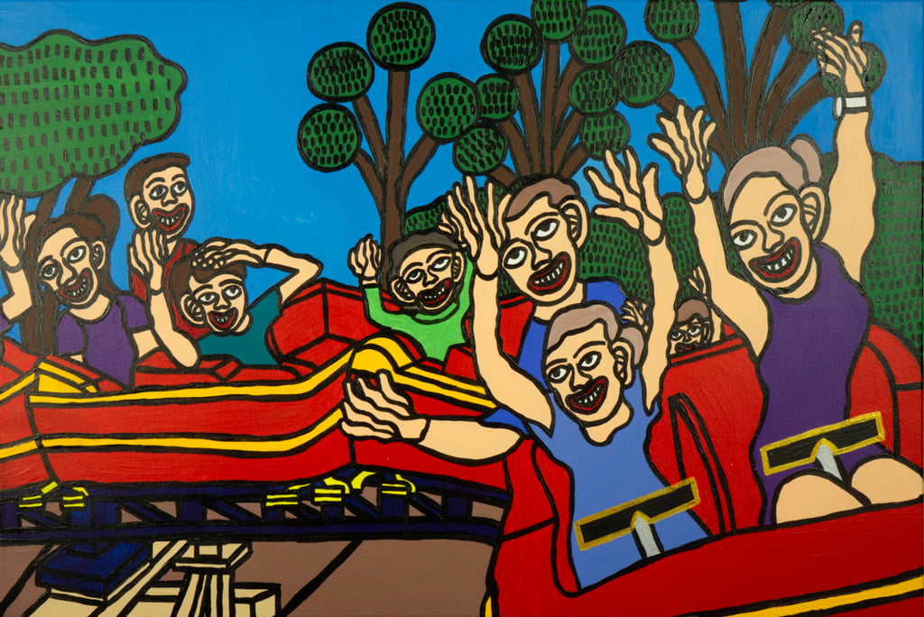 People are enjoying a ride on the Big Red Boat Coaster at Dreamworld.