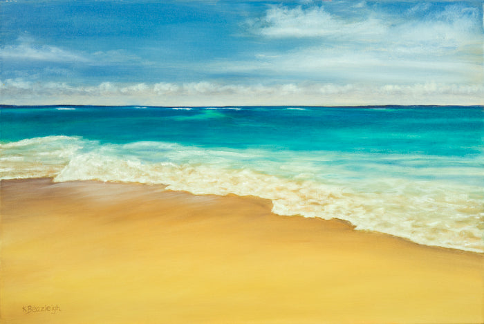 This painting invites the viewer to step onto this tranquil shore, where the gently rhythm of waves helps wash away your worries.